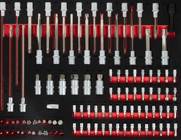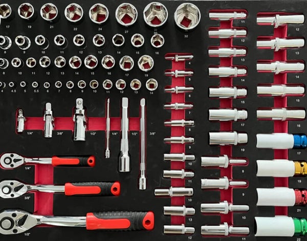 7 drawers filled with essential tools needed for automotive maintenance, neatly placed in foam inserts for best organization