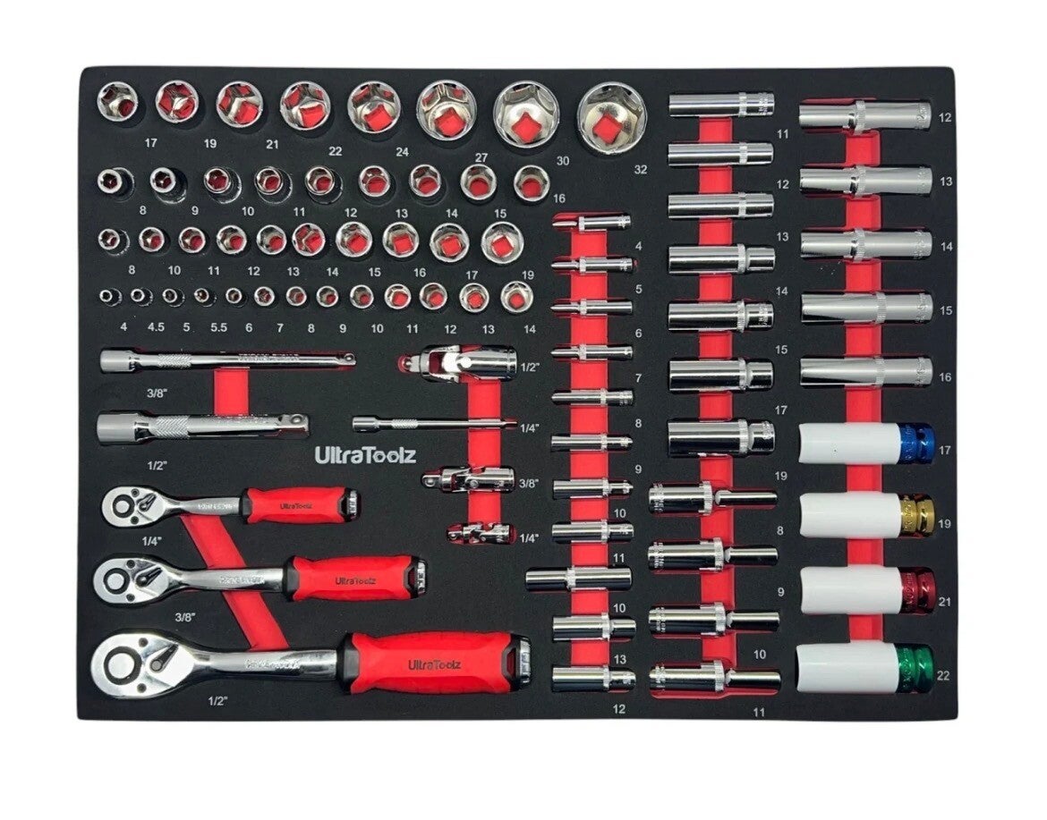 - Drawer 1 – Socket wrenches and ratchets